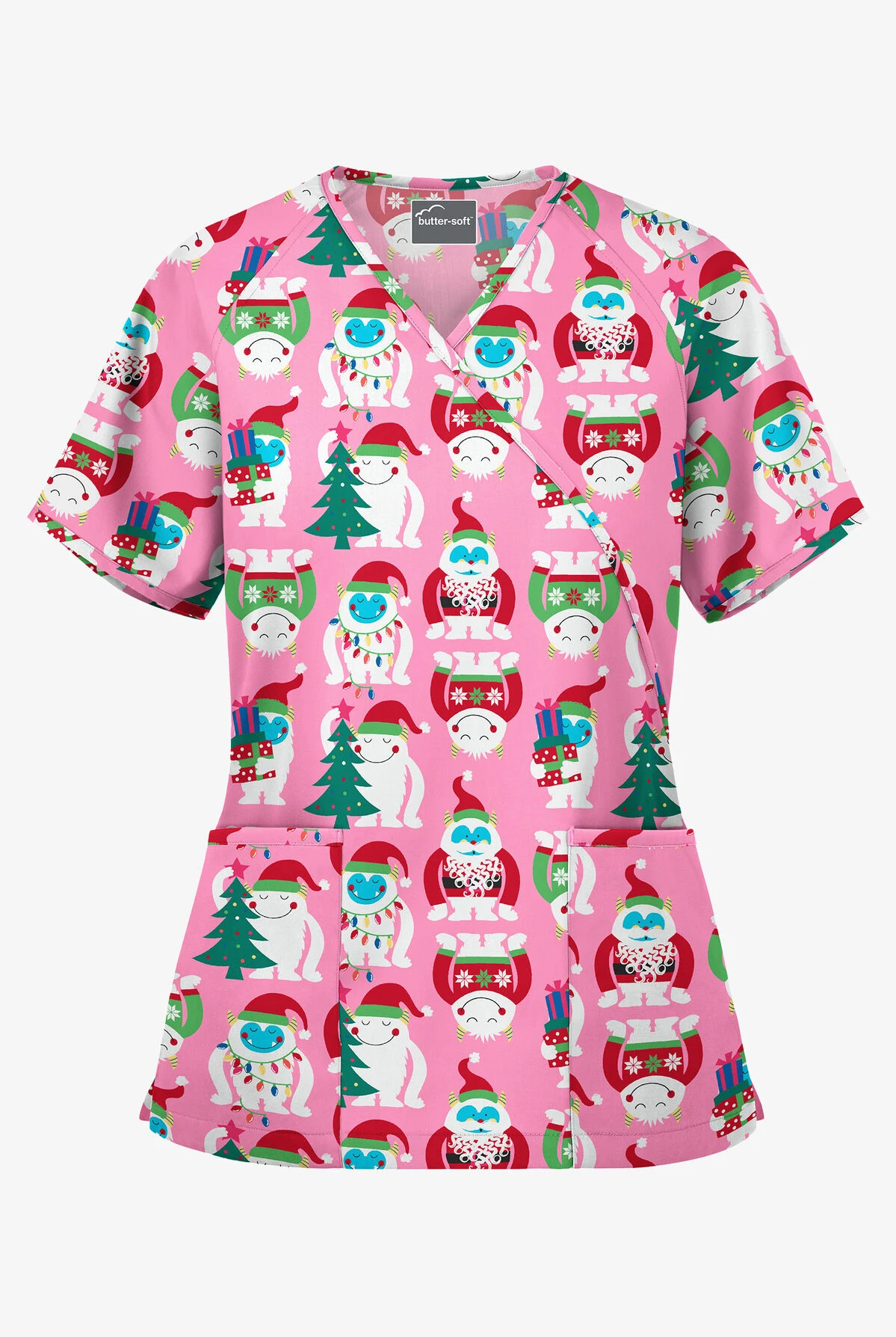Featuring A Worry-free Faux Wrap Style (sewn Shut!), Our New Scrub Top Offers A Flattering Fit With An Adjustable Tie At The Back. Side Slits Keep It Comfy Around The Hips, And Two Patch Pocket Are There For The Essentials. Monsters Love Christmas Too! They’re Dressed For The Holidays – And Even Got Their Trees.