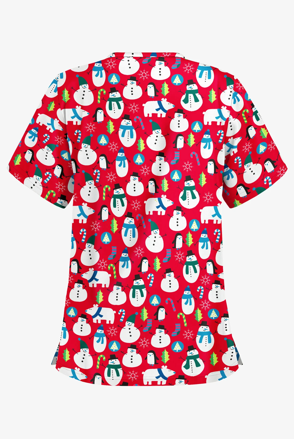 Looking for a scrub top with a little extra breathing room? Designed with a relaxed fit in a classic V-neck shape, our two-pocket top is the one. These snowmen are in a hurry – they need to have their party before everything melts.