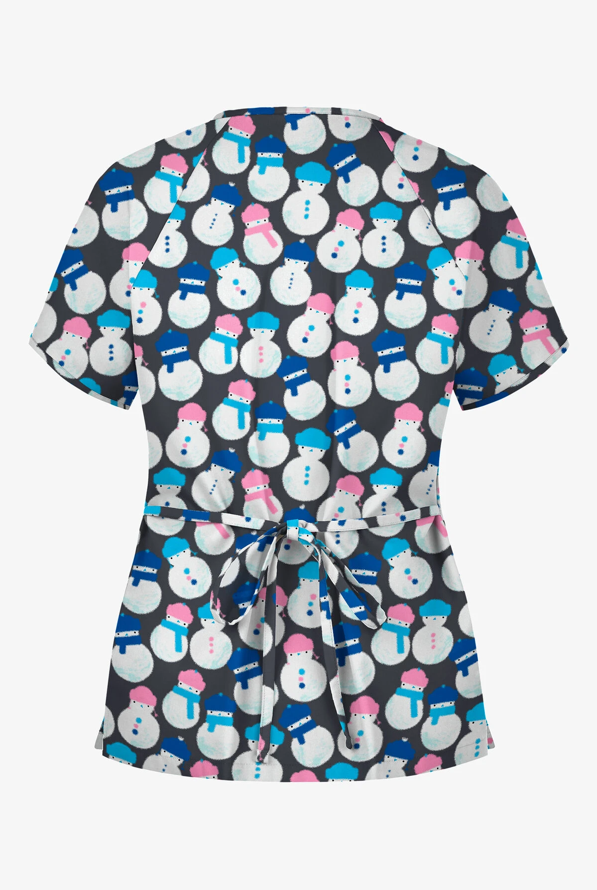 Featuring A Worry-free Faux Wrap Style (sewn Shut!), Our New Scrub Top Offers A Flattering Fit With An Adjustable Tie At The Back. Side Slits Keep It Comfy Around The Hips, And Two Patch Pocket Are There For The Essentials. If There’s One Thing We Know About Snowmen – It’s That They Really Know How To Chill. Party On!