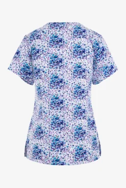 Maevn Animal Bloom Spotted Floral Women’s 3-Pocket STRETCH V-Neck Print Scrub Top