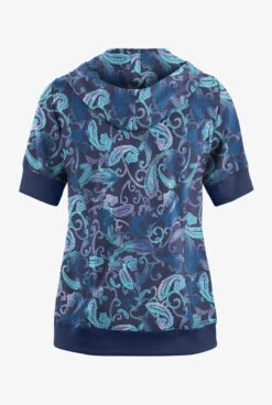 Easy STRETCH By Butter-Soft™ Paisley Tie Dye Women’s 3-Pocket Short Sleeve Pull-Over Scrub Hoodie
