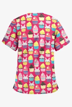 UA Easter Treats Fuchsia Women’s 3-Pocket V-Neck Print Scrub Top