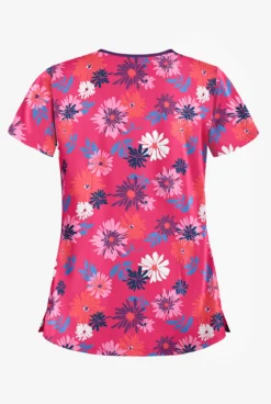 UA Floral Beauty Fuchsia Women’s 4-Pocket Princess Seam Printed Scrub Top