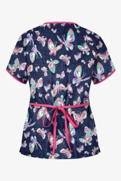 UA Butterfly Dance Navy Women’s 2-Pocket Mock Wrap Print Scrub Top