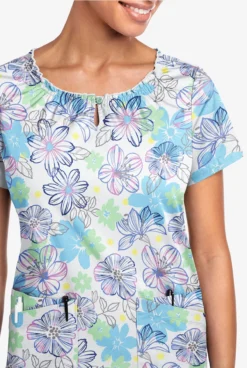 UA Butter-Soft STRETCH Floral Poolside View Women’s 6-Pocket Peasant Style Printed Scrub Top