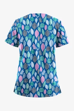 UA Butter-Soft STRETCH Swedish Leaves Royal Women’s 2-Pocket V-Neck Print Scrub Top