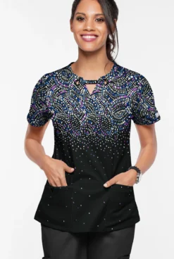UA Butter-Soft STRETCH Roman Mosaic Women’s 4-Pocket Grommet Neck Detail Printed Scrub Top