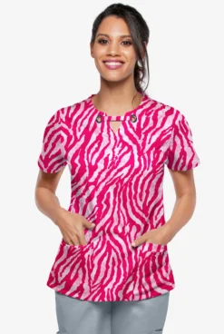 UA Butter-Soft STRETCH Tiger Fantasy Fuchsia Women’s 4-Pocket Grommet Printed Scrub Top