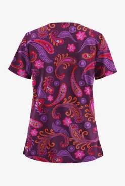 UA Butter-Soft STRETCH Vibrant Paisley Eggplant Women’s 2-Pocket V-Neck Printed Scrub Top