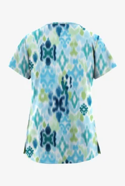 UA Butter-Soft STRETCH Varna Ikat Turquoise Women’s 3-Pocket V-Neck Mock Wrap Scrub Top