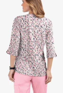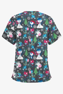 Butter-Soft Holiday Party Pewter Women’s 3-Pocket V-Neck Print Scrub Top