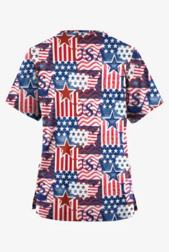 Butter-Soft Originals Happy Fourth Navy Women’s 2-Pocket Classic Fit V-Neck Printed Scrub Top