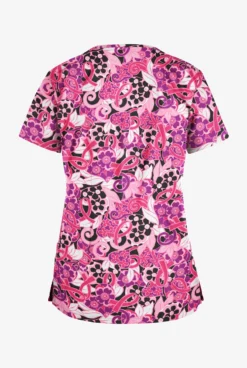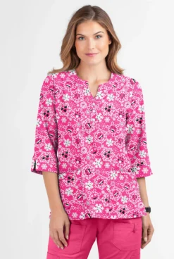Butter-Soft Smiling Snowflakes Fuchsia Women’s 2-Pocket Round Neckline Print Scrub Top