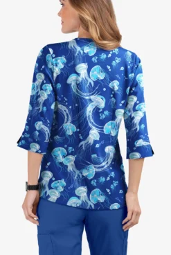 Butter-Soft Serene Waters Galaxy Blue Women’s 4-Pocket 3/4th Sleeve Print Scrub Top