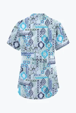 Butter-Soft Originals Floral Batik Morning Dew Women’s 6-Pocket Mandarin Collar Printed Scrub Top