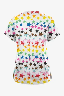 Butter-Soft Originals Happy Stars Women’s 6-Pocket Scallop Neck Printed Scrub Top