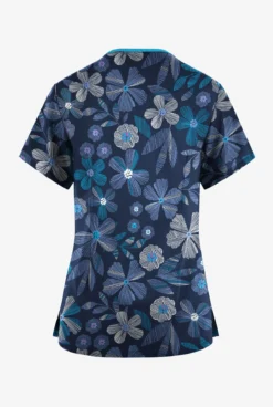 Butter-Soft Originals Linear Floral Ceil Women’s 3-Pocket Criss Cross Printed Scrub Top
