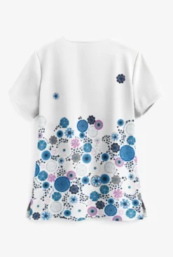 UA Butter-Soft STRETCH Dancing Floral White Printed Women’s 2-Pocket V-Neck Scrub Top