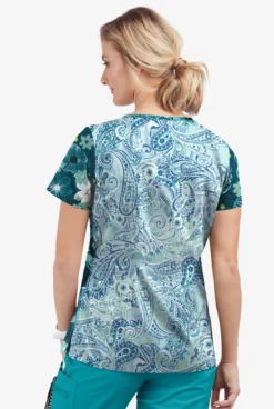 Butter-Soft STRETCH Floral Mirage & Paisley Womens 4-Pocket Crisscross Mixed Print Scrub Top