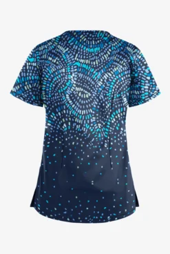Butter-Soft STRETCH Prism Ombre Navy Women’s 2-Pocket V-Neck Print Scrub Top