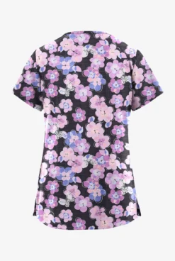 UA Butter-Soft STRETCH Blooms And Butterflies Pewter Women’s 3-Pocket V-Neck Mock Wrap Scrub Top