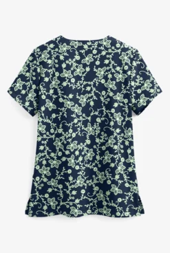 UA Butter-Soft STRETCH Floral Vines Navy Women’s 4-Pocket Criss Cross Print Scrub Top