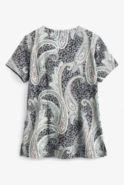 UA Butter-Soft STRETCH Floral Paisley Black Printed Women’s 2-Pocket V-Neck Scrub Top