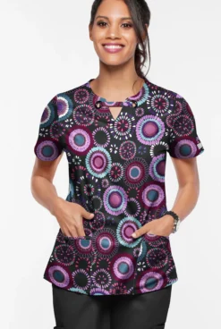 UA Butter-Soft STRETCH Floral Women’s 4-Pocket Grommet Neck Detail Scrub Top