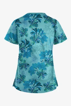 UA Butter-Soft STRETCH Garden Lilies Aqua Moon Women’s 2-Pocket V-Neck Print Scrub Top