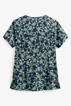 UA Butter-Soft STRETCH Floral Vines Navy Women’s 2-Pocket V-Neck Print Scrub Top