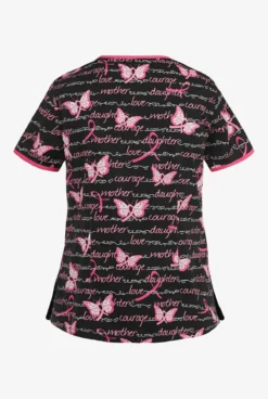 Koi Lite Coral/Navy Vertical Ombre Women’s 2-Pocket STRETCH Split Neckline Print Scrub Top
